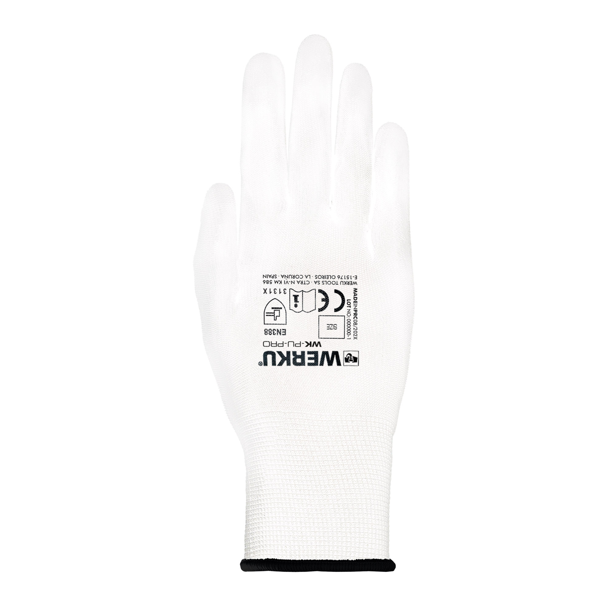 Guantes de poliuretano Werku diseñados para ofrecer una excelente combinación de comodidad, sensibilidad táctil y resistencia. Disponible en 3 tallas.